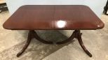 Drexel Mahogany Double Pedestal Dining Table, good condition, one leaf, 30"h., 62"w., 42"d. Drexel Mahogany Double Pedestal Dining Table, good condition, one leaf, 30"h., 62"w., 42"d.