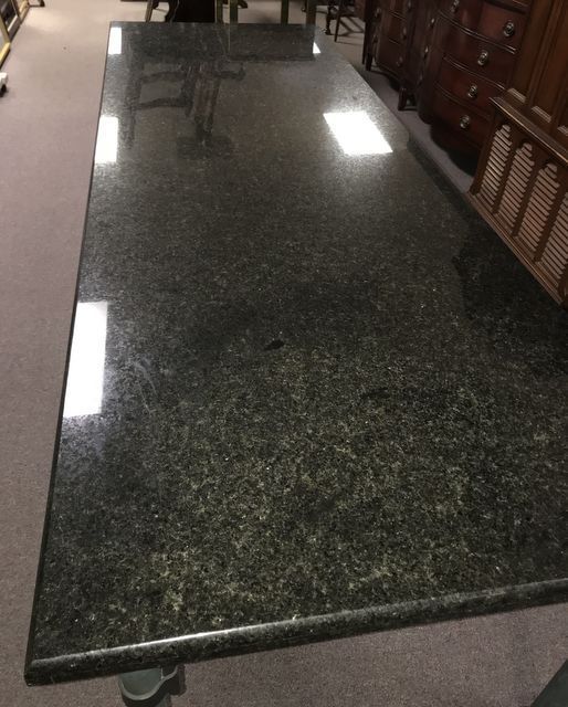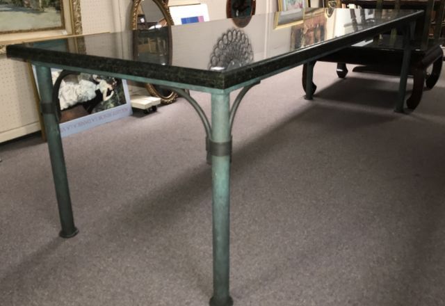 Large Faux Marble Top Iron Base Dining Table , top lifts off, is heavy, 29"h., 8'6 long., 35"w. Large Faux Marble Top Iron Base Dining Table , top lifts off, is heavy, 29"h., 8'6 long., 35"w.
