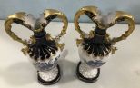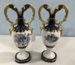 Royal Dux Hand Painted Urns, floral, gold gilt, handled, good condition, 11"h. Royal Dux Hand Painted Urns, floral, gold gilt, handled, good condition, 11"h.