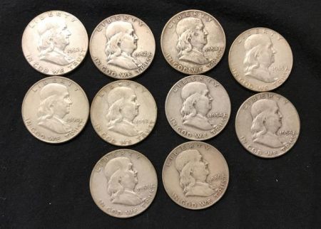 428 Ten Franklin Half Dollar Coins