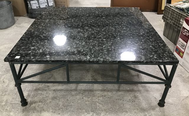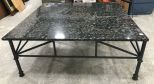 Large Contemporary Granite Style Top Coffee Table, square with metal base, 17"h., 44"w. Large Contemporary Granite Style Top Coffee Table, square with metal base, 17"h., 44"w.