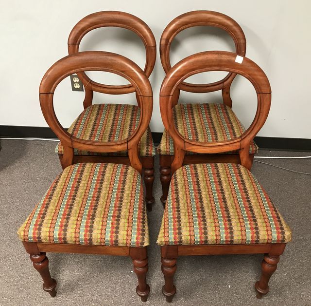 Set of Four Balloon Back Side Chairs, mahogany, clean seats, 35"h. Set of Four Balloon Back Side Chairs, mahogany, clean seats, 35"h.