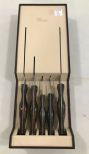 Vintage Cutco Five Piece Carving Set, hand made crafted in New York, come with warranty for replacement if one gets damaged, hanging holder, 17"h., 6"w. Vintage Cutco Five Piece Carving Set, hand made crafted in New York, come with warranty for replacement if one gets damaged, hanging holder, 17"h., 6"w.