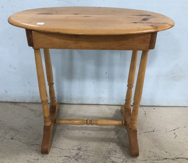 Primitive style oval accent table, single drawer, pine, good condition, 26"h., 28"w. Primitive style oval accent table, single drawer, pine, good condition, 26"h., 28"w.