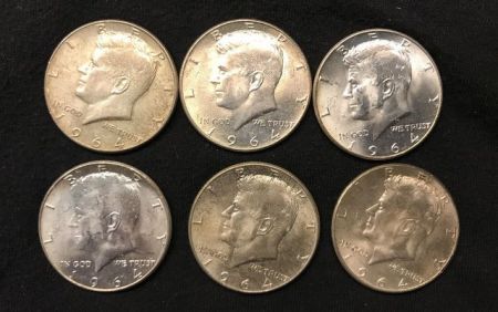 Six 1964 Kennedy Half Dollar Coins, very good condition. Six 1964 Kennedy Half Dollar Coins, very good condition.