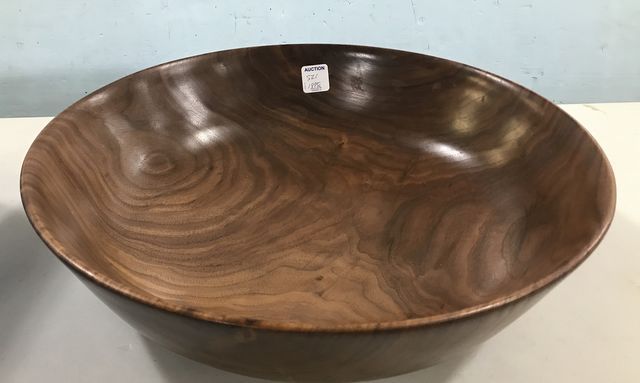 Beautiful Hand Made Black Walnut Bowl by Bill Show, dated 2002, 4"h., 15"dia. Beautiful Hand Made Black Walnut Bowl by Bill Show, dated 2002, 4"h., 15"dia.