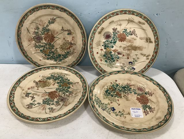 Four Antique Hand Painted Oriental Plates, marked, floral design, 7 1/2"dia. Four Antique Hand Painted Oriental Plates, marked, floral design, 7 1/2"dia.