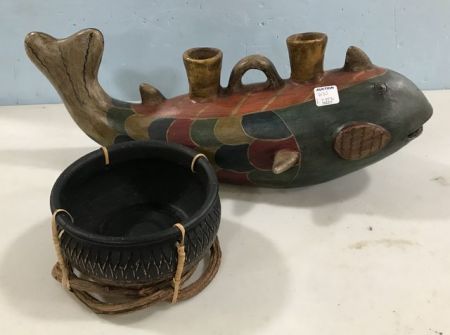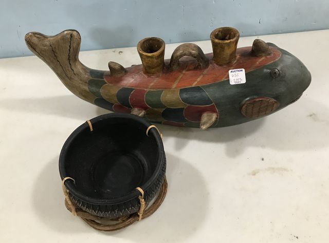 Tribal Hand Crafted Pottery Fish 19" and Philippines Hand Made Bowl Tribal Hand Crafted Pottery Fish 19" and Philippines Hand Made Bowl