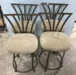 Four Metal Contemporary Silver Bar Stools, swivel top, upholstered cushions, 35"h., 22" seat to ground. Four Metal Contemporary Silver Bar Stools, swivel top, upholstered cushions, 35"h., 22" seat to ground.