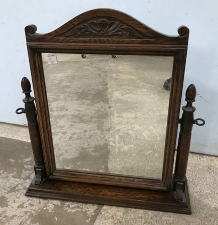 Vintage Oak Dresser Shaving Mirror Stand, carved crest, 23"h., 20"w. Vintage Oak Dresser Shaving Mirror Stand, carved crest, 23"h., 20"w.