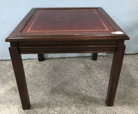 Period Tables Company Reproduction Leather Top Accent Table, has scratches on finish, 17"h., 20"w. Period Tables Company Reproduction Leather Top Accent Table, has scratches on finish, 17"h., 20"w.