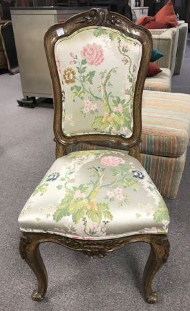 Antique Reproduction French Style Side Chair embroidery fabric, 40"h. Antique Reproduction French Style Side Chair embroidery fabric, 40"h.