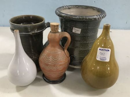 Mississippi Craftsman's Guild Pottery Vases, hand made, painted, marked, largest is 6"h. Mississippi Craftsman's Guild Pottery Vases, hand made, painted, marked, largest is 6"h.