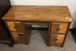 Depression Era Vanity Desk, double pedestal, four drawers, no back mirror, has finish wear, 28"h., 40"w., 16"d. Depression Era Vanity Desk, double pedestal, four drawers, no back mirror, has finish wear, 28"h., 40"w., 16"d.
