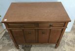French Provincial Fruitwood Finish Commode, single drawer, double door, finish wear with fading, 30"h., 32"w., 18"d. French Provincial Fruitwood Finish Commode, single drawer, double door, finish wear with fading, 30"h., 32"w., 18"d.
