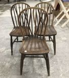 Three Antique Windsor Style Chairs, oak, spindle back, age wear, 34"h. Three Antique Windsor Style Chairs, oak, spindle back, age wear, 34"h.