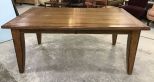 Large Farm primitive style dining table, tapered legs, has two leaves, some scratch spots, 30"h., 71"long, 43"w. Large Farm primitive style dining table, tapered legs, has two leaves, some scratch spots, 30"h., 71"long, 43"w.