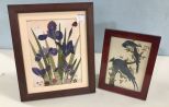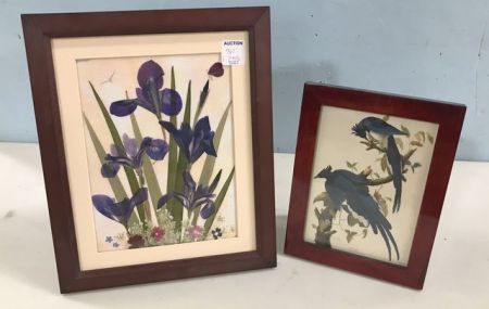 Pressed Flower Style Framed 11"h., 9"w. and Lithograph Bird Print. Pressed Flower Style Framed 11"h., 9"w. and Lithograph Bird Print.