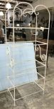 White Painted Metal Display Rack, five glass shelves, open display, 79"h., 30"w. White Painted Metal Display Rack, five glass shelves, open display, 79"h., 30"w.