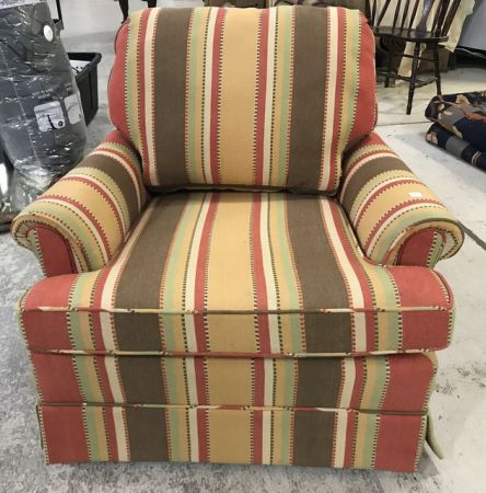 Striped Upholstered Arm Chair, single cushion. Striped Upholstered Arm Chair, single cushion.