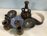 Group of Pottery vases, bowls, jug with lid, hand made, painted. Group of Pottery vases, bowls, jug with lid, hand made, painted.