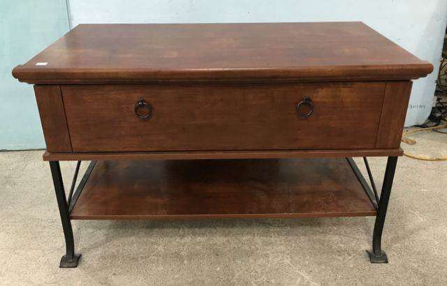 Modern TV stand, single drawer, two tier, metal frame, 23"h., 39"w., 21"d. Modern TV stand, single drawer, two tier, metal frame, 23"h., 39"w., 21"d.