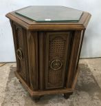 Octagon Lamp Table, two door, has finish wear, French Provincial style, 21"h., 20"w. Octagon Lamp Table, two door, has finish wear, French Provincial style, 21"h., 20"w.