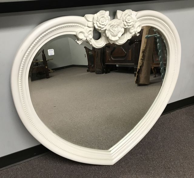 Disney Princess Heart Mirror, factory white, flower crest, beveled, 37"h., 37"w. Disney Princess Heart Mirror, factory white, flower crest, beveled, 37"h., 37"w.