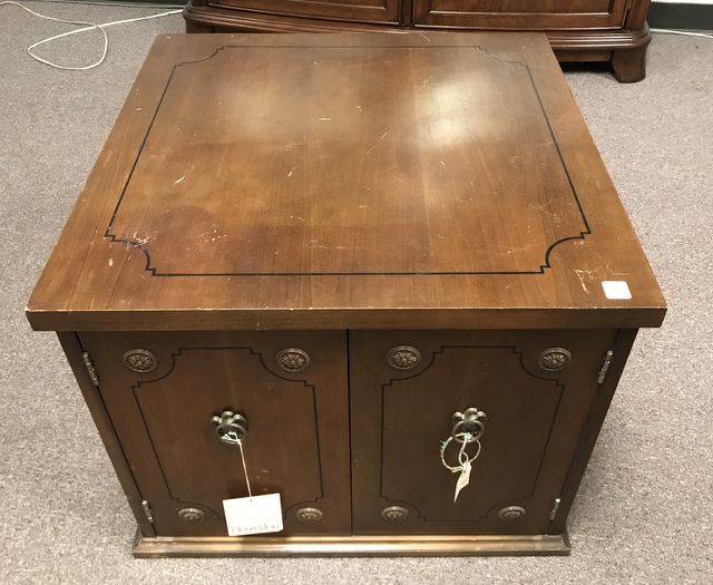 Henredon Cherry Lamp Side Table, double door, has scratches on finish, 21"h., 26"w. Henredon Cherry Lamp Side Table, double door, has scratches on finish, 21"h., 26"w.