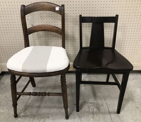One Vintage Walnut Side Chair and Small Dark Finish Chair, 32"h. One Vintage Walnut Side Chair and Small Dark Finish Chair, 32"h.