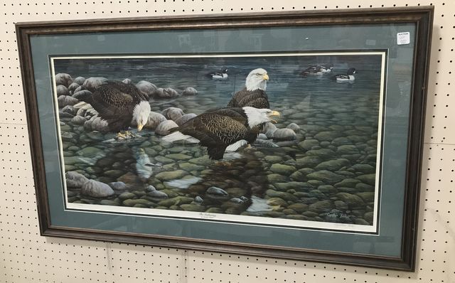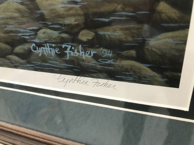 The Gathering by Gynthie Fisher Numbered Print, 1511/5000, pencil signed, matted, framed, 25"h., 41"w. The Gathering by Gynthie Fisher Numbered Print, 1511/5000, pencil signed, matted, framed, 25"h., 41"w.