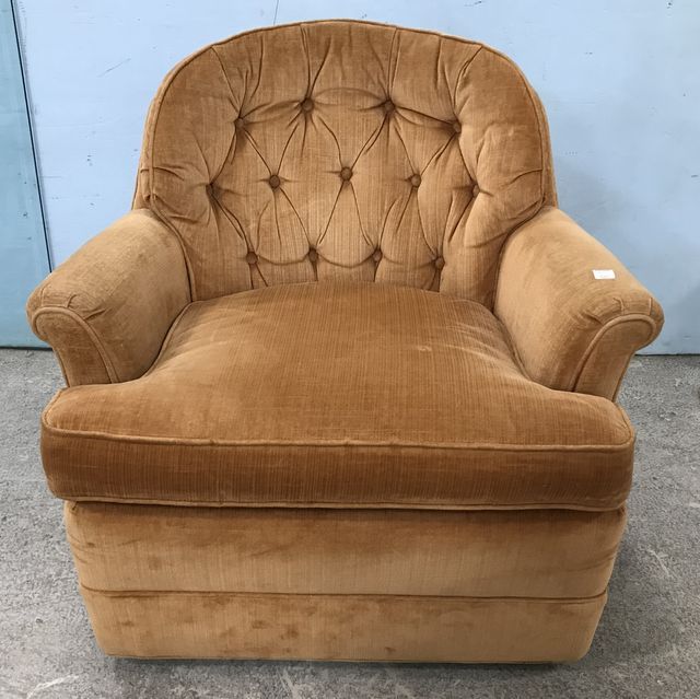 Custom Gallery Upholstered Arm Chair, button tufted, 29"h. Custom Gallery Upholstered Arm Chair, button tufted, 29"h.