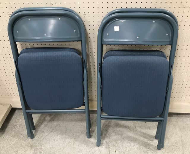 Four Fold Out Card Table Chairs, one has loose stretcher, overall good condition. Four Fold Out Card Table Chairs, one has loose stretcher, overall good condition.