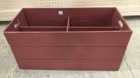 Pink divided storage box, four section, thin wood, 11"h., 24"w. Pink divided storage box, four section, thin wood, 11"h., 24"w.