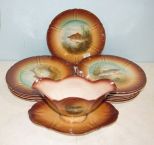 Hand painted 12 fish plates, and fish gravy boat. Hand painted 12 fish plates, and fish gravy boat.