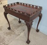 Mahogany, reproduction, carved legs, gallery (one side has been repaired) 28"h., 29"w. Mahogany, reproduction, carved legs, gallery (one side has been repaired) 28"h., 29"w.
