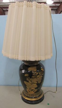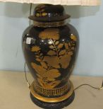 Ginger jar lamp, gold trim design, 37"h. Ginger jar lamp, gold trim design, 37"h.