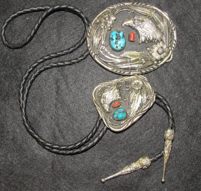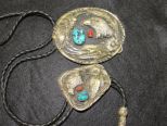 423 Turquoise and Coral Bolo Tie and Bucklet