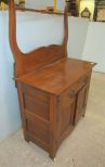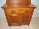 On porcelain wheels, one drawer, two door, average condition, 52"h., 32"w. On porcelain wheels, one drawer, two door, average condition, 52"h., 32"w.