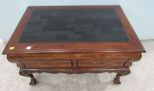 Faux leather panels, two drawers, faux marble look alike top, 22"h., 39"w. Faux leather panels, two drawers, faux marble look alike top, 22"h., 39"w.