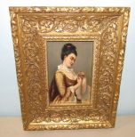 Ornate gold framed, painting on board, modern, 13"h., 10"w. Ornate gold framed, painting on board, modern, 13"h., 10"w.