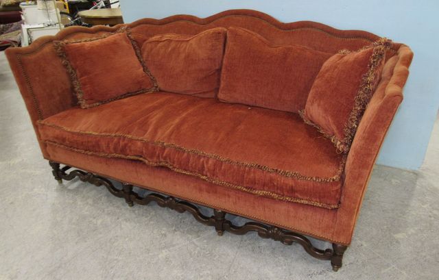 carved wood base, tacked border, 41"h., 81"w. carved wood base, tacked border, 41"h., 81"w.