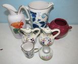 Holt Howard pitcher, Handpainted vase, pottery vase, two jars, pitcher. Holt Howard pitcher, Handpainted vase, pottery vase, two jars, pitcher.