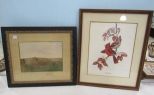 1194 Framed Landscape Print and Cardinal Print Artist Signed