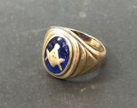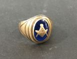 Vintage Masonic ring, marked 10K gold, size 8 1/2, blue center stone in cracked, though still intact in the ring. Vintage Masonic ring, marked 10K gold, size 8 1/2, blue center stone in cracked, though still intact in the ring.