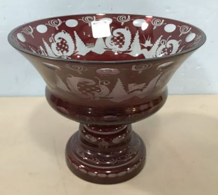 Bohemian Crystal Ruby Red Cut To Clear Compote, 7"h., 8 1/2"dia. Bohemian Crystal Ruby Red Cut To Clear Compote, 7"h., 8 1/2"dia.