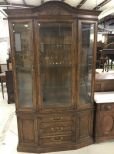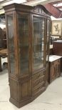 Tryon Manor by Drexel China Cabinet, lighted, two piece, good condition, glass shelves, beveled glass doors, three base drawers with two side door, 82"h., 48"w., 16"d. Tryon Manor by Drexel China Cabinet, lighted, two piece, good condition, glass shelves, beveled glass doors, three base drawers with two side door, 82"h., 48"w., 16"d.