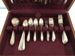 National Silver Company Flatware Set, knives, spoons, forks, butter knife, meat fork, serving pieces, box included. National Silver Company Flatware Set, knives, spoons, forks, butter knife, meat fork, serving pieces, box included.