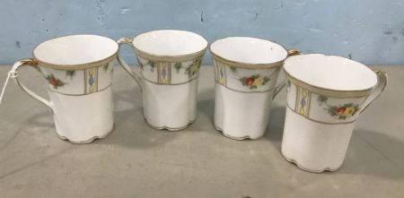 Hand Painted Nippon Cups, porcelain, 3"h. Hand Painted Nippon Cups, porcelain, 3"h.