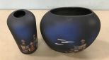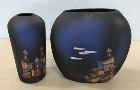 BasRelief Raku Pottery Vases, from Odessa, Ukraine, Signed by Artist, dated 2000, 7"h., 7"w., other is 6"h., 3"w. BasRelief Raku Pottery Vases, from Odessa, Ukraine, Signed by Artist, dated 2000, 7"h., 7"w., other is 6"h., 3"w.